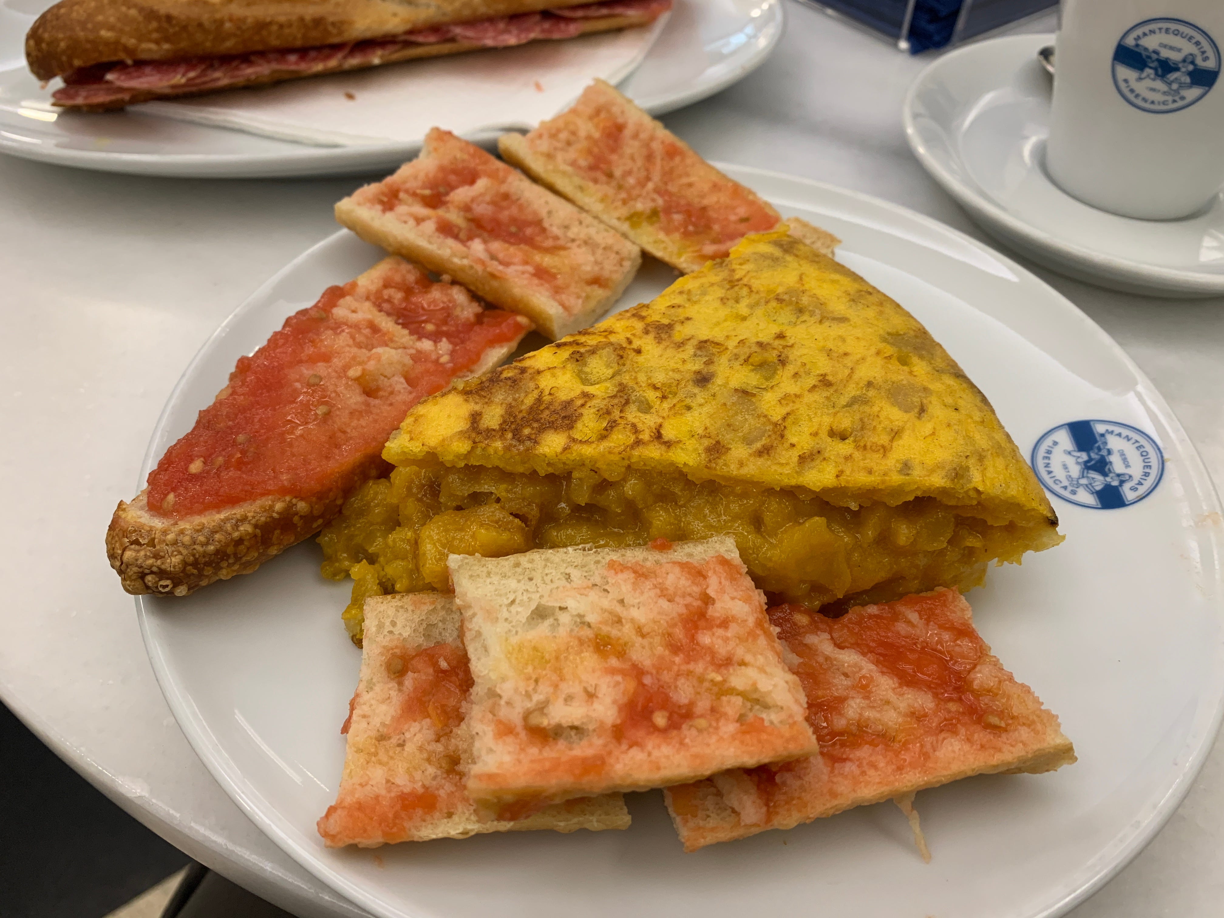 Tortilla de patatas - Mantequerias Pirenaicas (Barcelona): For the longest time, I had a hot take that I didn’t really understand the appeal of tortilla de patatas, but it all made sense after I tried it here—I’m a convert.