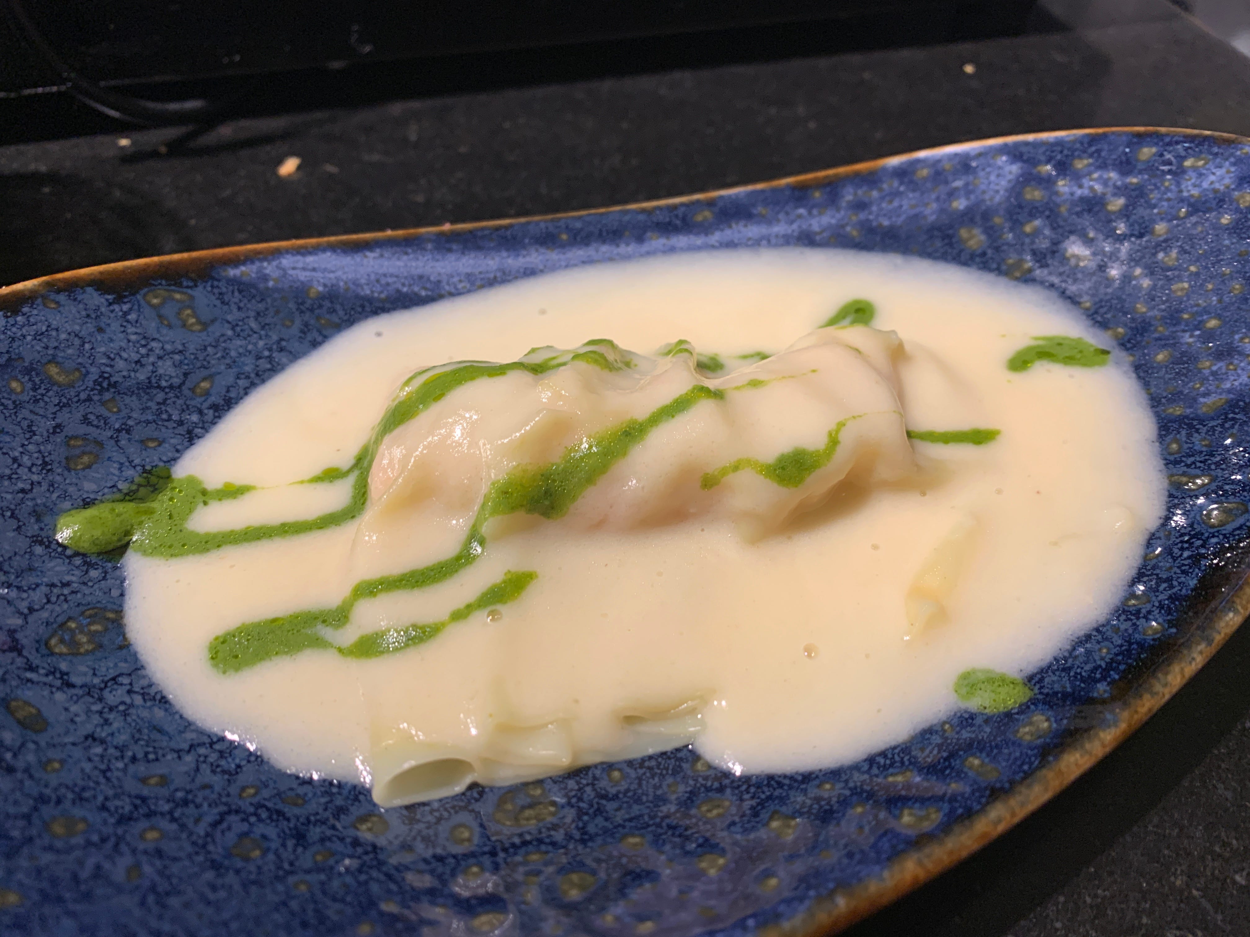 Ravioli de langostino en salsa Martini - Bar Antonio (San Sebastián): The fact that I walked in to this tiny restaurant and had a spectacular bite of food—creamy, savory sauce over a tender shrimp encased in handmade pasta—for five euros really exemplifies the best of San Sebastián’s unparalleled food culture.