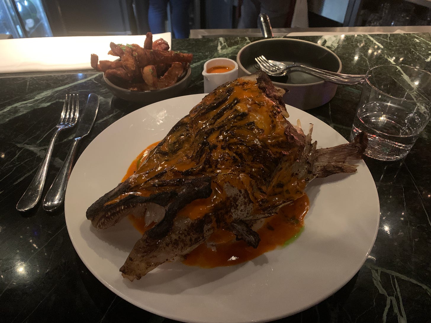 Smoked cod’s head - Fallow (London): Between it being one of my two favorite fish (the other being mackerel) and the novelty of a whole massive fish head coming out on a plate, I enjoyed the entire experience of fishing pockets of meat covered in a buttery sriracha sauce out of the cod’s head.